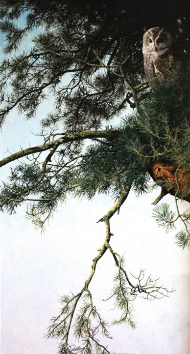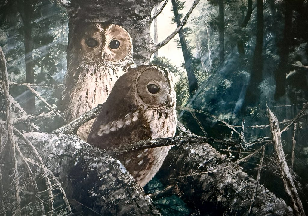 With a background in horticulture, landscape design, and illustration, Robert’s art is deeply rooted in his lifelong fascination with the natural environment. Each brushstroke reflects careful observation and a profound respect for the subjects he portrays — whether it’s the watchful gaze of an owl, the delicate balance of a woodland scene, or the shifting light across a moorland horizon.